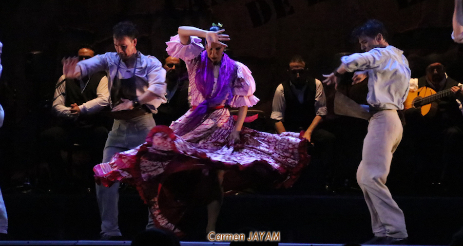 A oscuras y con el cante como protagonista, los quejíos se acompasaron con la parte masculina del cuerpo de baile del Ballet, que hicieron retumbar con sus taconeos una ‘Catedral del Cante’ que llenó aforo. Las ‘Estampas Flamencas’ acababan de comenzar.