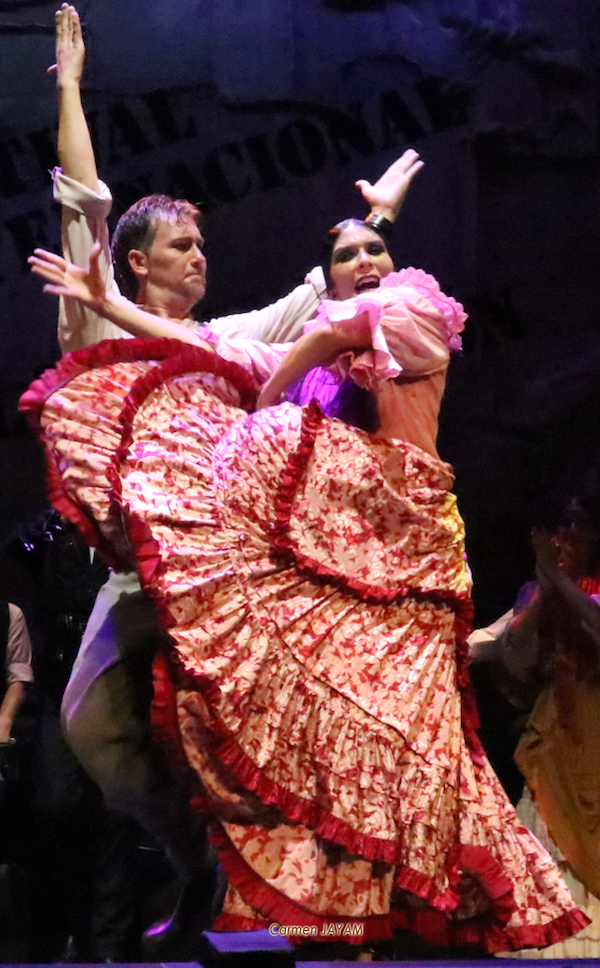 Con el martinete como protagonista, jugando con los brazos y movimientos del cuerpo para hacer figuras y mostrar una puesta en escena cargada de elegancia, la formación iniciaba una noche de esas que quedan en el recuerdo de La Unión. Dos de sus solistas deleitaron al público minutos después con un zorongo de Enrique Bermúdez, bajo la coreografía, al igual que la primera pieza, de Miguel Ángel Corbacho. Los caracoles metieron al escenario los mantones y las batas de cola del cuerpo femenino del Ballet, en un juego de movimientos cargado de colorido y dinamismo, entre palmas y giros coreografiados por el director del Ballet. Tras una seguiriya que enmudeció a los asistentes, Olmo quiso añadir un extra a este espectáculo que se estrenó en 2021: bailar un taranto. Rendía así homenaje a su maestro Manolo Marín, quien le enseñó este palo flamenco, el primero que recuerda, a los ocho años. Sus brazos, manos y gestos hablaron taranto, despertando una ovación del público que le hizo esconder una media sonrisa.