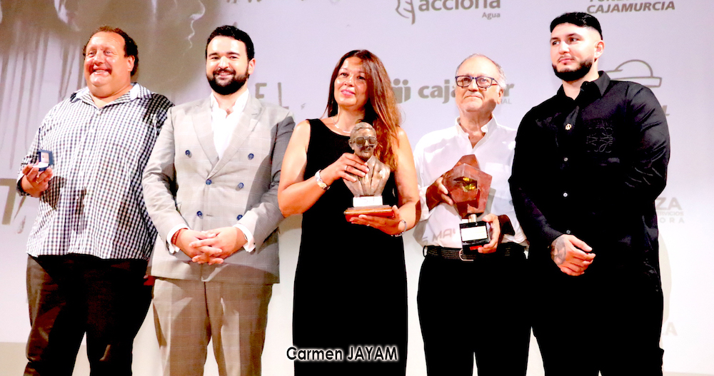 Asensio Sáez, artista multidisciplinar, fue uno de ellos, que en la actualidad da nombre al premio que distingue a personalidades destacadas en las artes plásticas, vinculadas al Festival. Por eso, este año lo recibe a título póstumo el pintor y escultor Pepe Lucas por su apoyo incondicional al Festival y su labor de difusión a la historia de La Unión. Fue la hija del creador del cartel anunciador de la 48ª edición del Festival, María Lucas, quien recibió emocionada el galardón. “Ya no es posible separar La Unión de la biografía de mi padre. Aquí hemos disfrutado, sobre todo del mejor cante, toque y baile gracias a vosotros”, afirmó. La Unión le fascinaba: “Este es un pueblo con alma de cruce, de fronteras, de gente de todas partes, de artistas que vienen y van fascinados por el territorio que, como bien describió Asensio, sí tiene algo de biografía alucinante”, añadió.