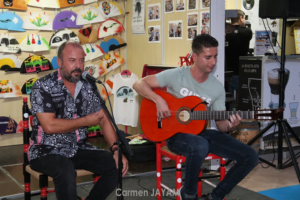 El estand de PMK Abanicos de la 'Avenida del Flamenco' organizó ayer, en la 'Avenida del Flamenco', una actuación del cantaor unionense Sebas Andreu y del guitarrista José Ortega para agradecer a los visitantes al festival del Cante de las Minas la buena acogida que han tenido los artísticos abanicos que elabora, entre los que figuran los oficiales de esta 63 edición de certamen flamenco más importante del mundo.