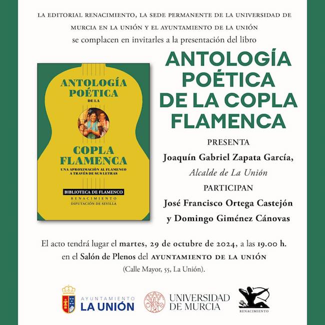 El libro ofrece una selección de las letras más populares y tradicionales, junto con otras más recientes y de autor conocido, agrupadas por palos y siempre bajo criterios poéticos. Será presentada el martes 29 de octubre en el Ayuntamiento de La Unión.