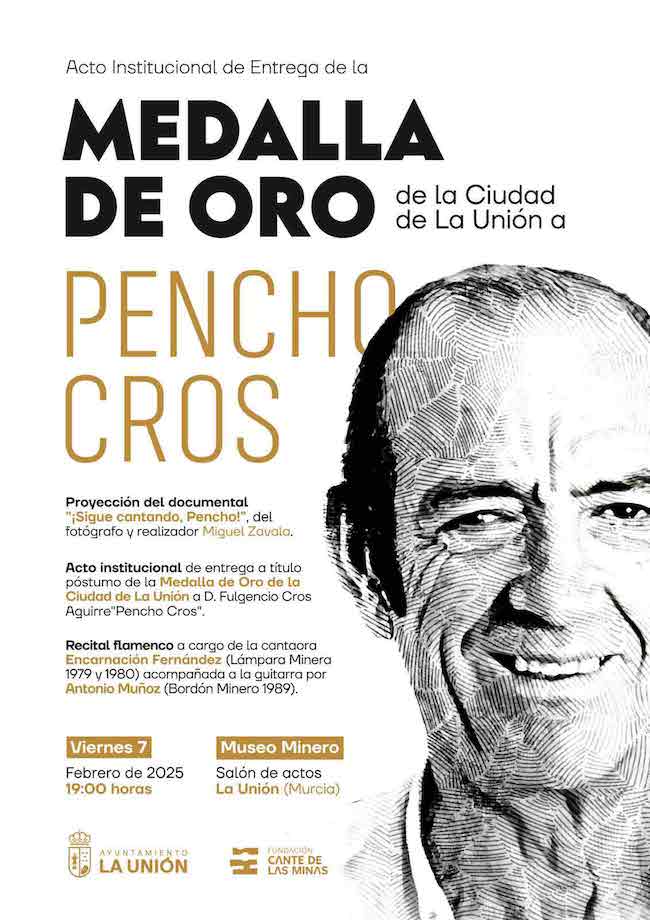 El próximo viernes 7 de febrero, día en el que Pencho Cros habría cumplido 100 años, el Ayuntamiento de La Unión rendirá un emotivo homenaje a su legado concediéndole, a título póstumo, la Medalla de Oro de la Ciudad.