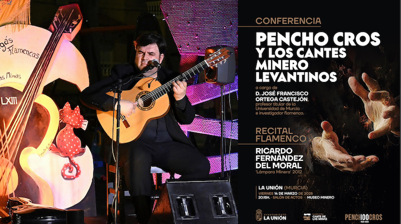 El legado del gran Pencho Cros y la riqueza de los cantes minero-levantinos serán protagonistas en una conferencia especial, que se celebrará en el Salón de Actos del Museo Minero de La Unión el próximo viernes 14 de marzo a las 20:15 horas.El acto contará con la ponencia de D. José Francisco Ortega Castejón, profesor titular de la Universidad de Murcia e investigador flamenco, quien profundizará en la figura de Pencho Cros, una de las voces más emblemáticas del flamenco minero y referente indiscutible del género.