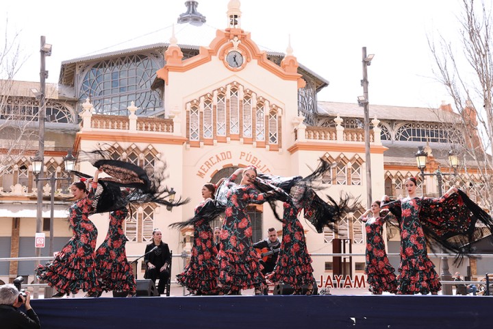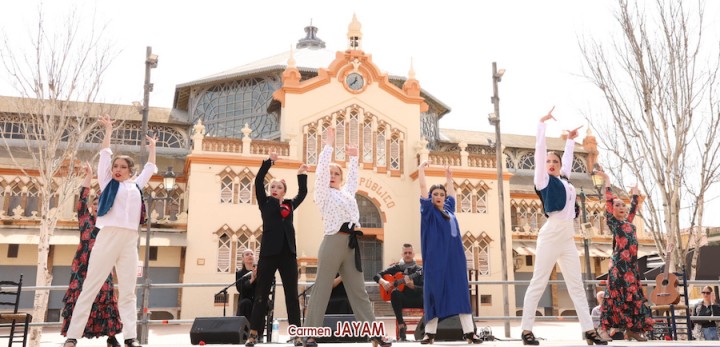 La quinta edición del 'Encuentro internacional de escuelas de flamenco y danza española' ha comenzado de forma brillante y cautiva con el espectáculo que han ofrecido cuadro academias en la plaza de Joaquín Costa.
