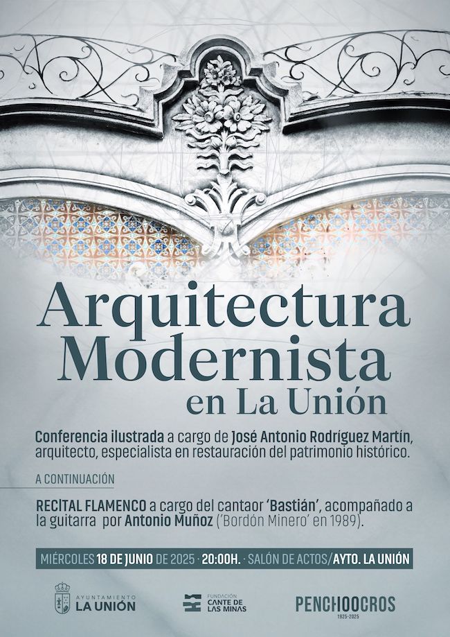 El salón de actos del ayuntamiento acoge este miércoles la conferencia 'Arquitectura modernista en La Unión', a cargo del arquitecto José Antonio Rodríguez Martín, poniendo el broche a la velada una actuación del cantaor 'Bastián', acompañado por el guitarrista unionense Antonio Muñoz. Entrada gratuita.