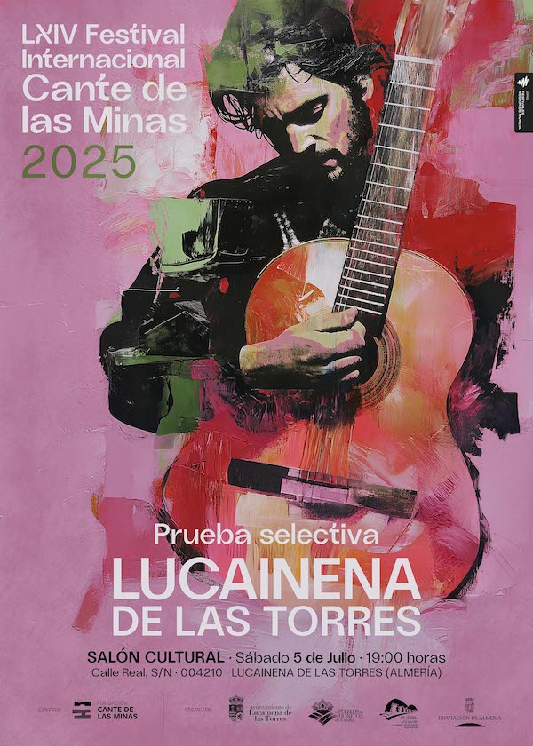 Se trata de la segunda parada en la provincia de Almería que hace el encuentro flamenco este año, tras la prueba en Viator el pasado sábado. En esta ocasión, será en el Salón Cultural a las 19:00 horas, organizada por la Fundación Cante de las Minas, el Ayuntamiento de Lucainena de las Torres y la Diputación de Almería. En ella concursarán tres aspirantes a los máximos galardones de guitarra flamenca y cuatro de cante.