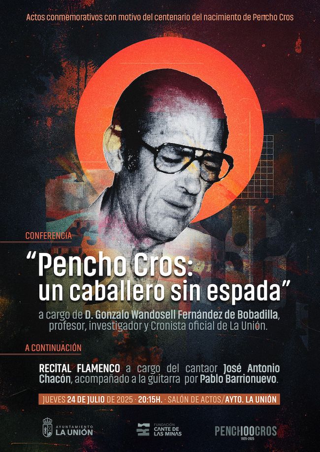 Es el título de la conferencia que, en el marco de los actos conmemorativos por el centenario del nacimiento de gran cantaor flamenco unionense, ofrecerá este jueves Gonzalo Wandosell Fernández de Bobadilla, profesor, investigador y cronista oficial de La Unión. Después habrá un recital flamenco con la voz de José Antonio Chacón y la guitarra de Pablo Barrionuevo.