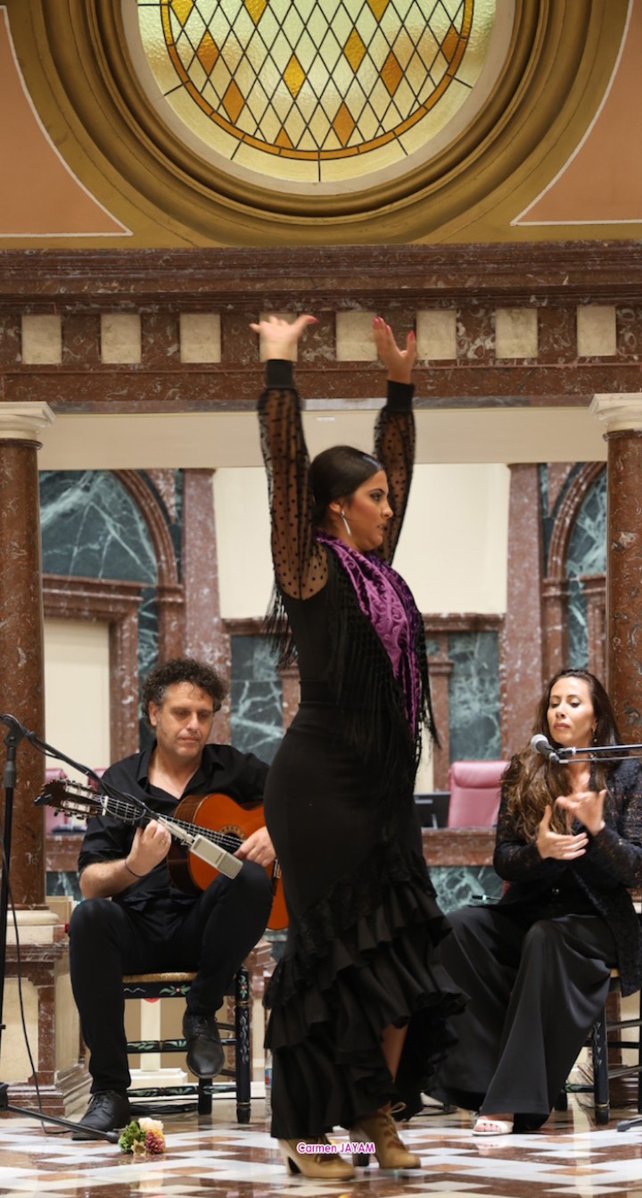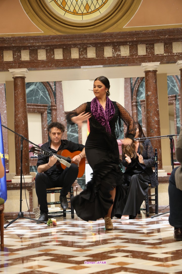 La presentación de la Agenda Cultural finalizó con la actuación de Miguel Ángel Solano al toque, María Belén Alamillos al cante y María Elena Corví al baile.