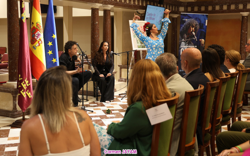 Siete cantaores y la misma cifra de guitarriastas, además de cinco bailaoras, además de jóvenes talentos de la 'Escuela de flamenco de Andalucía', protagonizarán las actuaciones que, con entrada gratuita, tendrán lugar al final de cada jornada del Cante de las Minas en diversos locales hosteleros. Entre ellos figuran Miguel Ángel Solano, María Belén Alaminos y María Elena Lorente, a quienes se observa en la presentación de la programación del festival en la Asamblea Regional.