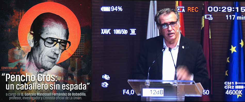 Las conferencias que ofrece el cronista oficial de La Unión, Gonzalo Wandosell Fernández de Bobadilla, son, por regla general, breves pero cargadas de contenido y con una estructura que enseguida asimila el oyente, lo que las hace muy entretenidas. En este caso, el sujeto de su alocución en el salón de actos de la Casa del Piñón era alguien con el que tuvo un primer contacto personal en la Bodega Lloret, siendo presentado por el recordado Jesús. Se trataba de Pencho Cros y el encuentro duró unos cuarenta minutos, quedando Gonzalo Wandosell cautivado por la persona que acababa de conocer, por lo que, incluso, apuntó varias de las cosas que le dijo. “Lo primero es antes”, por ejemplo, fue una de las frases que desde entonces tiene muy presente.
