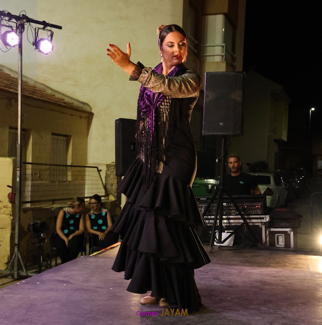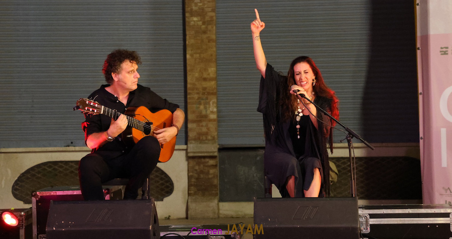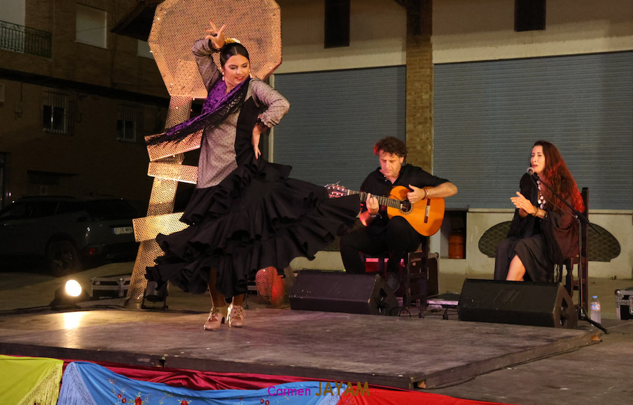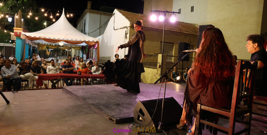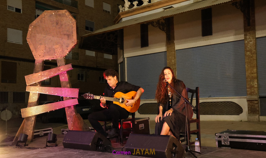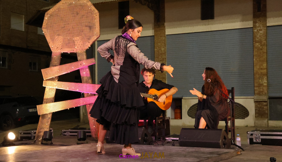 El café cantante montando en la 'Avenida del flamenco' fue el marco de la primera 'madrugá', con el guitarrista Miguel Ángel Solano, la cantaora María Belén Alaminos y la bailaora María Elena Lorente Corví.