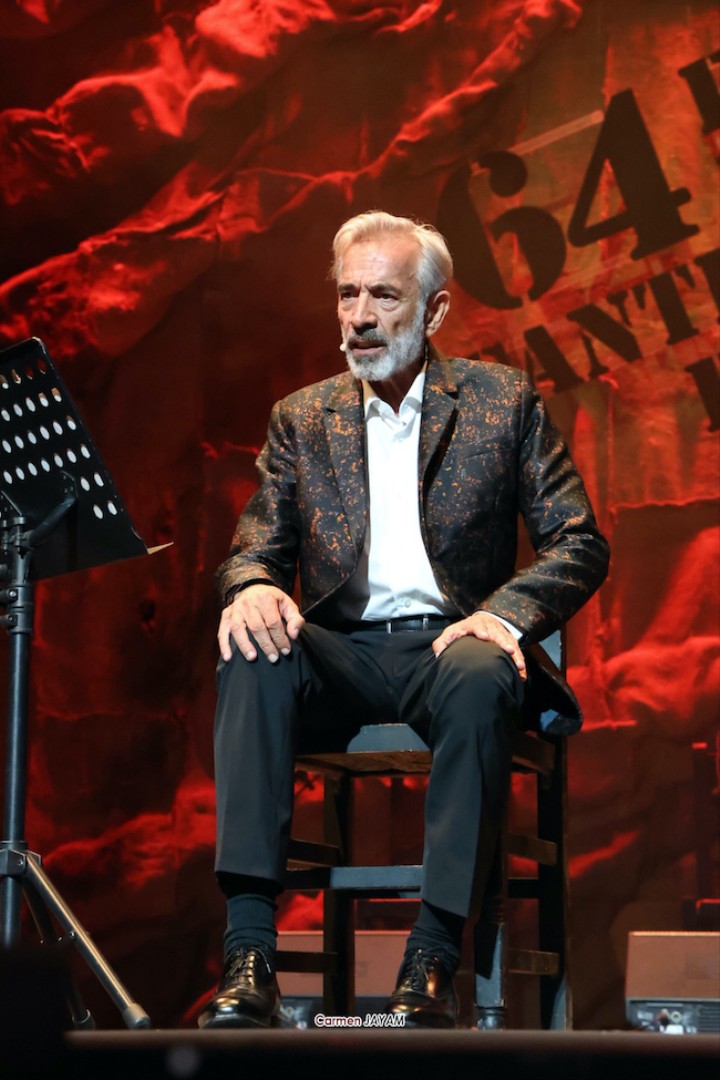 "Un contador de historias", que en este caso es "un actor, un amigo". Son frases utilizadas por la presentadora, Teresa García, para anunciar la presencia de Imanol Arias sobre el escenario de la 'Catedral del cante' con el reto de ofrecer el pregón de la sexuagésima cuarta edición, “uno de los compromisos más ‘apretaos’ que tenido en mi vida”, expresó quien compareció con chaqueta de raso en dos tonalidades, añadiendo que en esta "catedral del cante" tenía los mismos nervios que cuando pisó por primera vez un escenarios.
