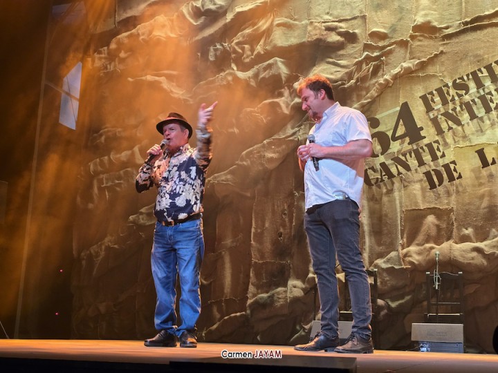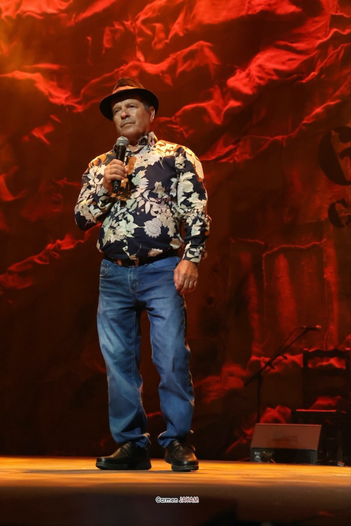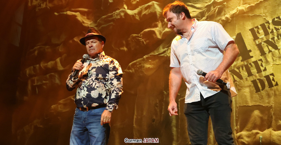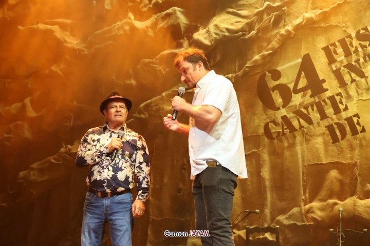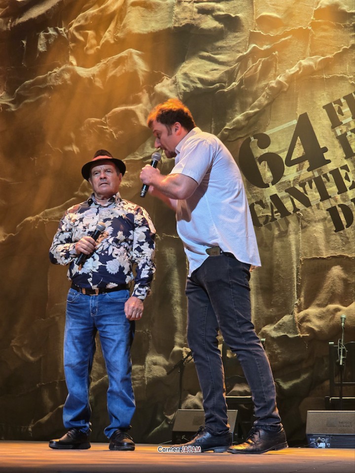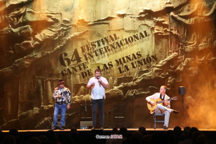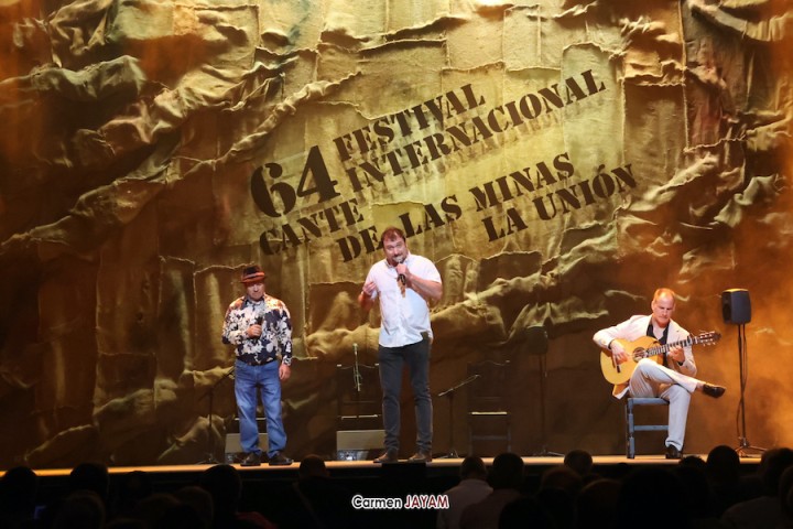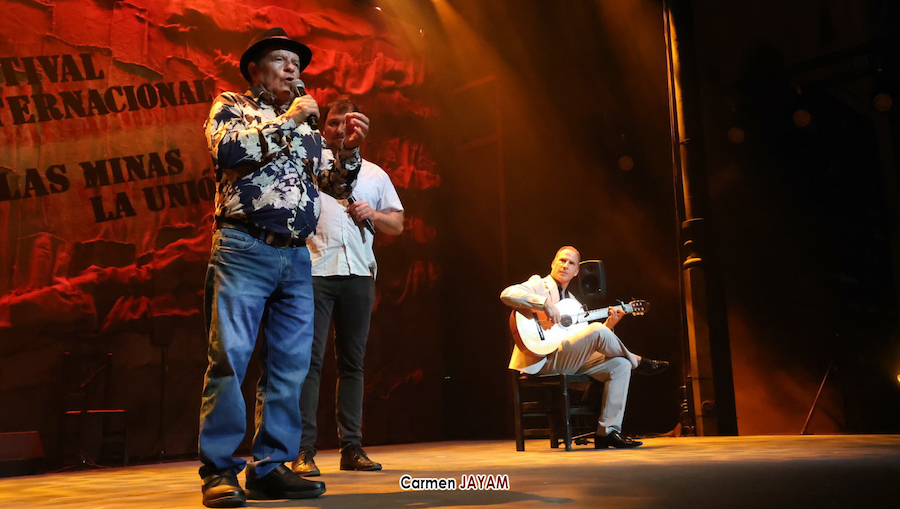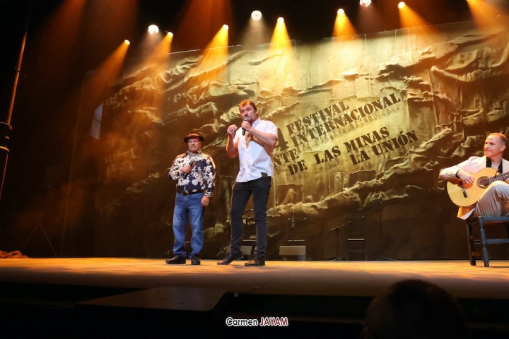 Tras el pregón, las tablas de 'la Catedral' recibieron a dos ganadores del certamen internacional de trovos ‘Pascual García Mateos’: Iván ‘El de La Escucha’ y Juan Santos ‘El Baranda’, con el acompañamiento del unionense Juan Martínez ‘El Mergo’.