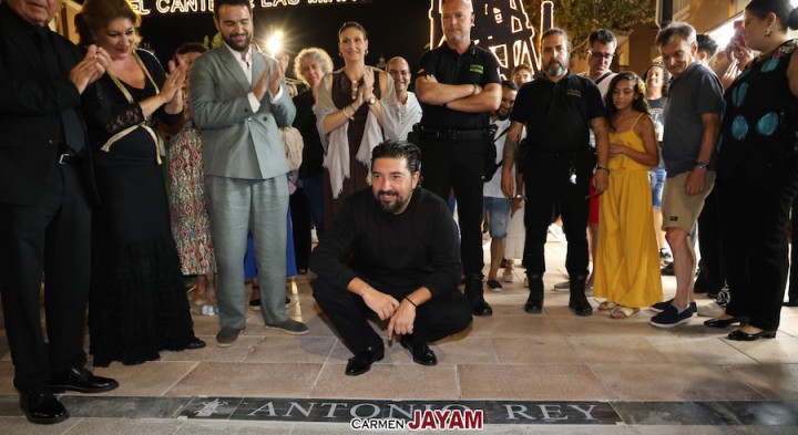 Para que su vinculación con el Cante de las Minas siga latente, el artista descubrió una placa con su nombre en la ‘Avenida del Flamenco’ al finalizar su concierto. Y no en un sitio cualquiera: al lado de la que recuerda al maestro Enrique Morente. Junto a los artistas que le acompañaron en el escenario, e improvisando baile, palmas y cante, inauguraron este espacio que hace que su nombre quede para siempre vinculado a esta tierra que desde hace más de dos décadas tiene un hueco en su corazón. Un momento en el que estuvo presente, además, el guitarrista Yerai Cortés, que horas antes recibía el ‘Castillete de Oro’ dentro de la Agenda Cultural del Cante de las Minas, regalando un posado juntos en esta nueva placa.