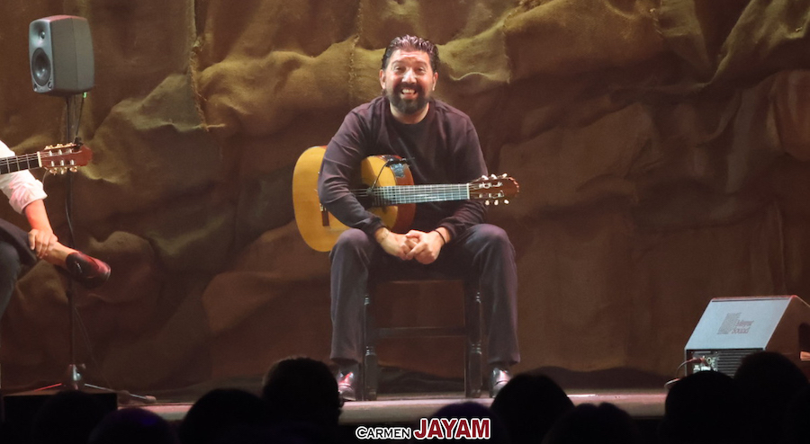 Minutos después salía al escenario su cuadro flamenco para cambiar de palo y deleitar por rumbas: su hermana Mara Rey al cante, Juan Parrilla a la flauta, Álex Fernández a la percusión, Manuel Heredia a la segunda guitarra, Josué ‘El Ronkio’ al bajo y Yona Luna y Raúl Obregón a las palmas. Así arrancaba ‘Historias de un flamenco’, un espectáculo con el que expresa cómo vive su momento actual, repasando y recordado su trayectoria desde los inicios de un artista que ha conseguido con su último disco su segundo Latin Gramy en 2024 a Mejor Álbum de Flamenco, sumándose al primero en 2020 por ‘Flamenco sin fronteras’ y a otras distinciones como el Premio Nacional de Guitarra (2010).
