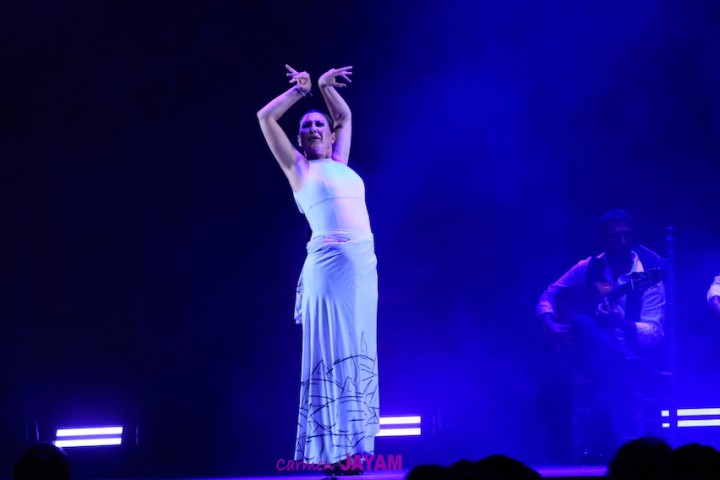 ‘Mar’ fue una serie de elementos que trajeron los tientos y las alegrías, con un vestido blanco que parecía estar mecido por las olas. Y del blanco pasó al negro, al luto más profundo, introducido por el sonido de unas campanas y un baile junto a Daniel Saltares donde reinó la sobriedad. ‘Con lo mucho que yo lo quería / se fue de mi vera / se fue pa’ siempre” cantaba la voz de May Fernández, que compartió la noche junto a una ya conocida por este templo flamenco: la de ‘El Mati’, ganador de la ‘Lámpara Minera’ en 2019.