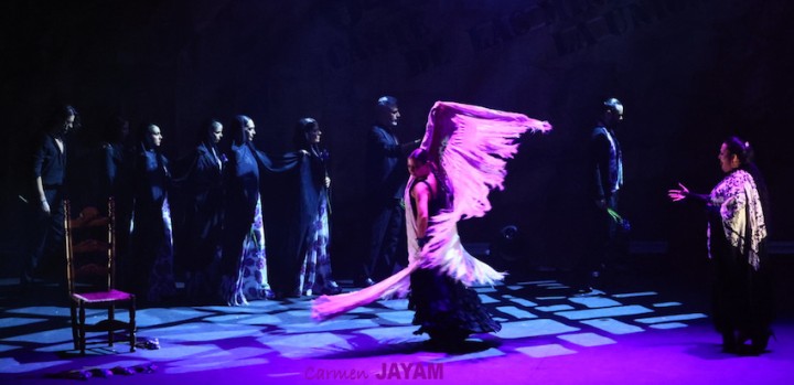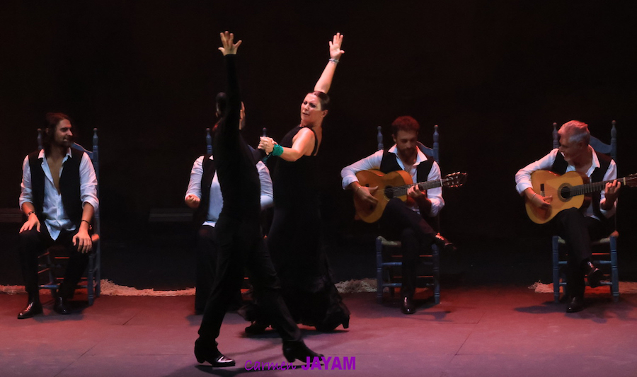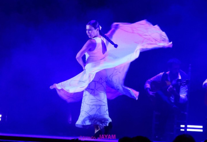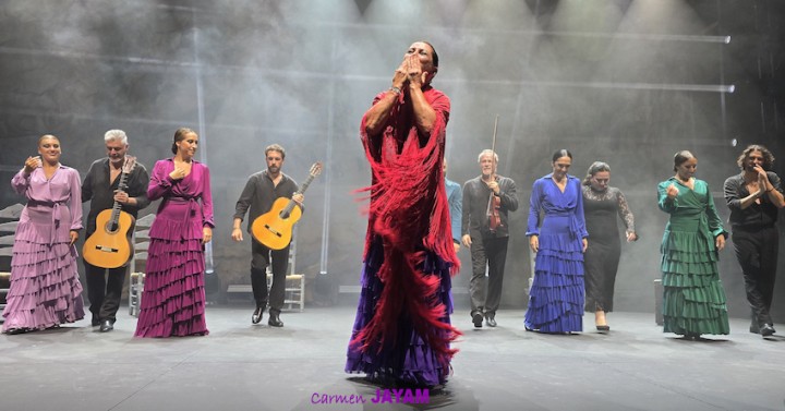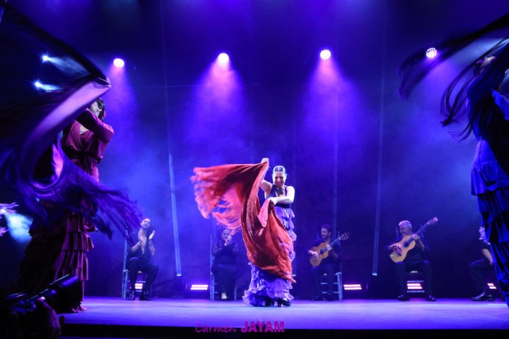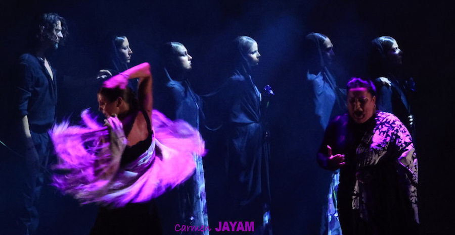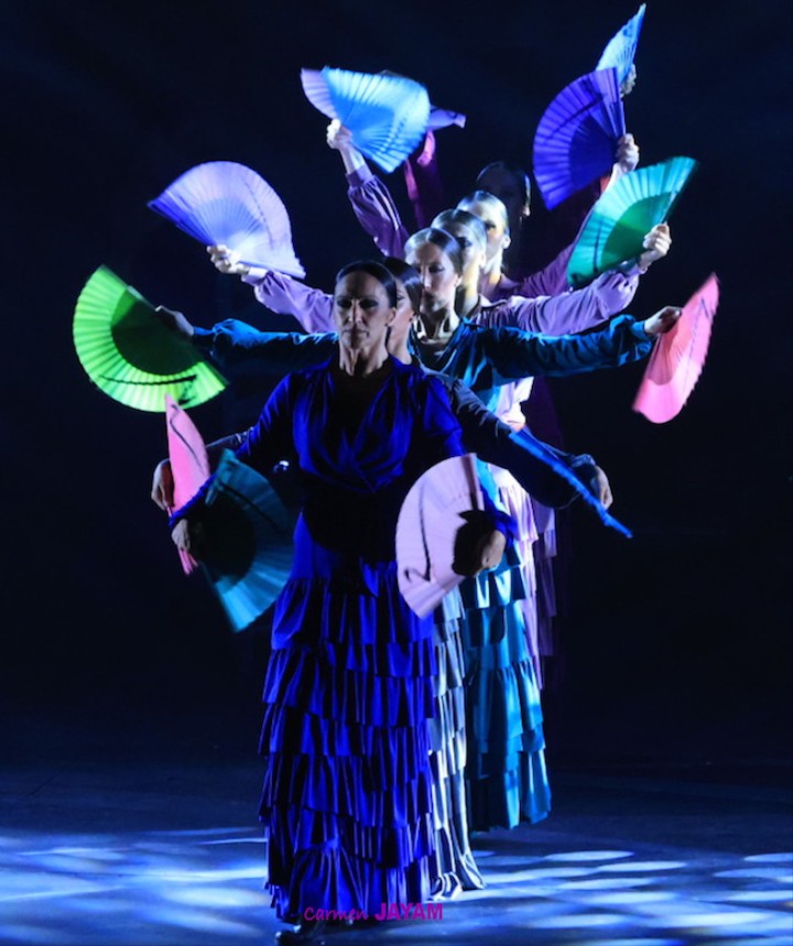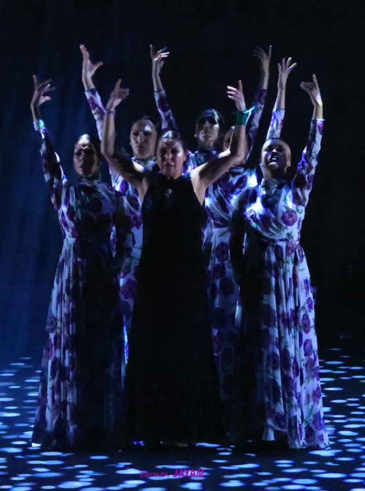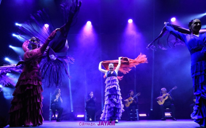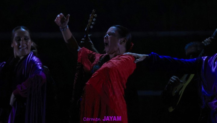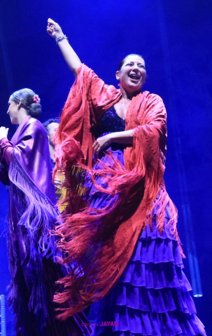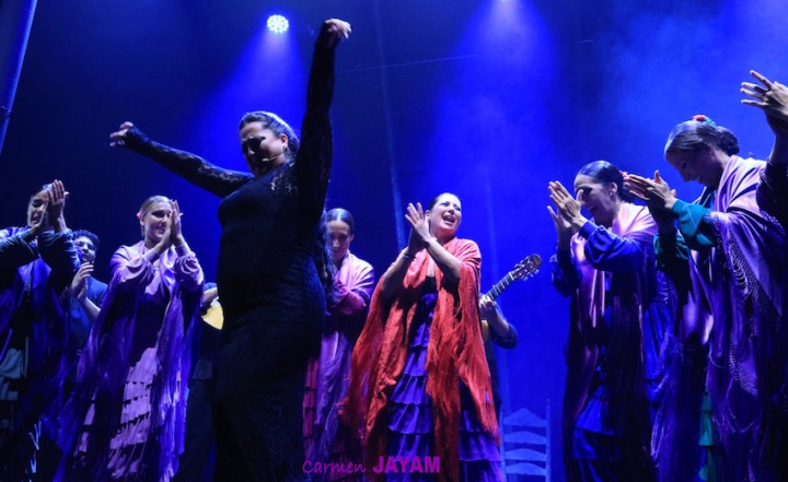 Por eso apareció en escena y se sentó en esa silla para comenzar su taconeo, ahora con fuerza, junto al director musical del espectáculo, Keko Baldomero. En casi penumbra, con la elegancia que la caracteriza, empezó a hacer los primeros guiños al cielo. No hubo que esperar mucho para que sonara una minera en este templo del flamenco, titulada ‘Voz’, porque la noche quería descifrar, a través de 15 piezas, el lenguaje del flamenco con “canciones de Paco y para Paco”. Con ‘Ritmo’ su cuerpo de baile salía a escena y mostraban, a golpe de bastón, una perfecta sincronización que daría paso a un segundo acto, “que representa el amor que le tenía al mar y a su tierra”.