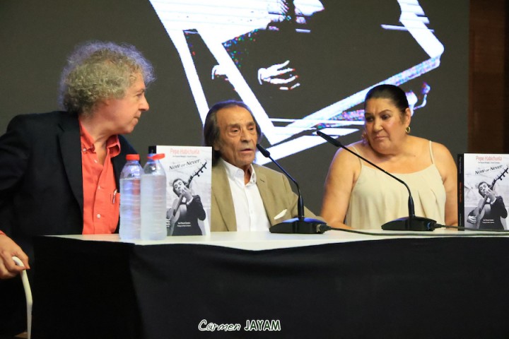 El encuentro con José Antonio Carmona, su nombre real, esta tarde durante la Agenda Cultural ha sido una conexión con una persona humilde, cercana y carismática, de esas que solo pueden producir admiración. Su historia la ha compartido a través de la presentación del libro ‘Now or never’, la biografía en la que José Manuel Gamboa no solo ha plasmado toda su vida, sino que incluye las voces de su hijo Josemi Carmona y de su mujer, Amparo Bengala, quien ha estado acompañándole en este importante momento para el guitarrista.