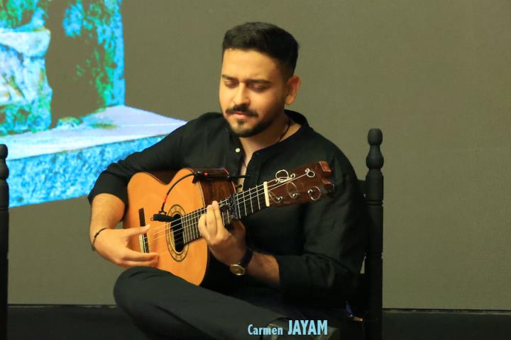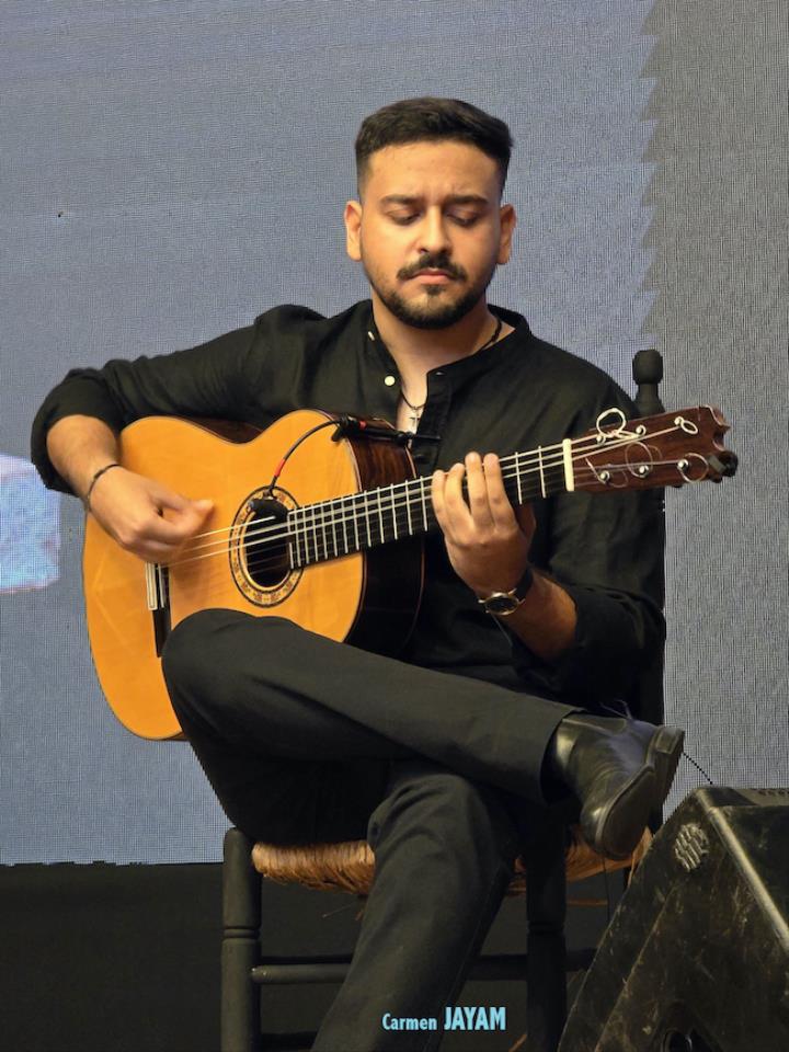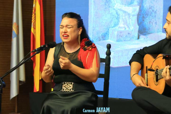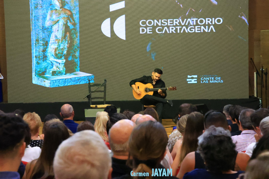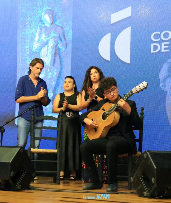 La entrega del premio permitió también disfrutar de los alumnos del Conservatorio: Manuel Zamora ha interpretado ‘Sonar por Bulerías’ de Yerai Cortés, guitarrista alicantino galardonado en esta edición con el ‘Castillete de Oro’; Luis Felipe ha interpretado la ‘zambra del niño Miguel’ y Susana Contreras se le ha sumado en el cierre del acto por abandolaos.