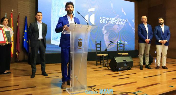 “El Conservatorio de Música de Cartagena está al servicio de la excelencia y de formar a nuestros jóvenes, y no se puede entender el patrimonio cultural de la ciudad y su comarca sin él”, matizó el consejero de Educación y Formación Profesional, Víctor Javier Marín, que ha entregado el galardón junto a Zapata.
