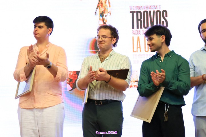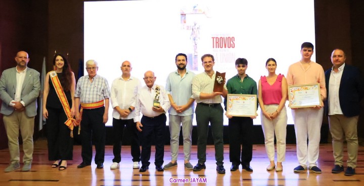 Este año, los distinguidos han sido Antonio Piñana, como 'Heraldo'; Lydia Martín, como 'Musa'; y Diego Ortega 'El Molinero', como 'Juglar', siendo este último quien ha presentado el desarrollo del concurso, tomando el relevo para los restantes apartados Tomás Frutos. Otro nombre propio ha sido el unionense Juan Martinez 'El Mergo', quien ha acompañado con brillantez a los troveros en el concurso.