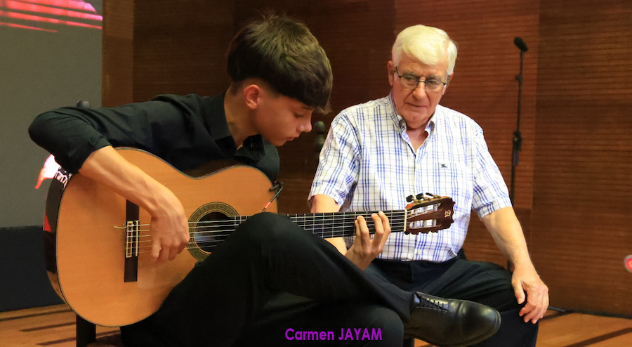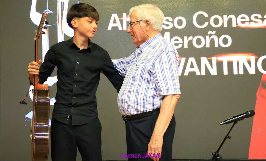 La saga Piñana tiene cuerda (de guitarra, por supuesto) para rato, como atestiguó Rafael Piñana Bermúdez, cuando apareció en el escenario del salón de actos de la Casa del Piñón para ofrecer un solo con su abuelo, Antonio Piñana, 'Heraldo' de esta edición del certamen 'Pascual García Mateos' y quien fue el primer guitarrista oficial del Festival del Cante de las Minas, contemplando al que formará parte de la nueva generación desde que una familia que está vinculada a la guitarra desde hace más de un siglo. Antonio también recordó que su padre acompañó al trovero Ángel Roca muchos años.