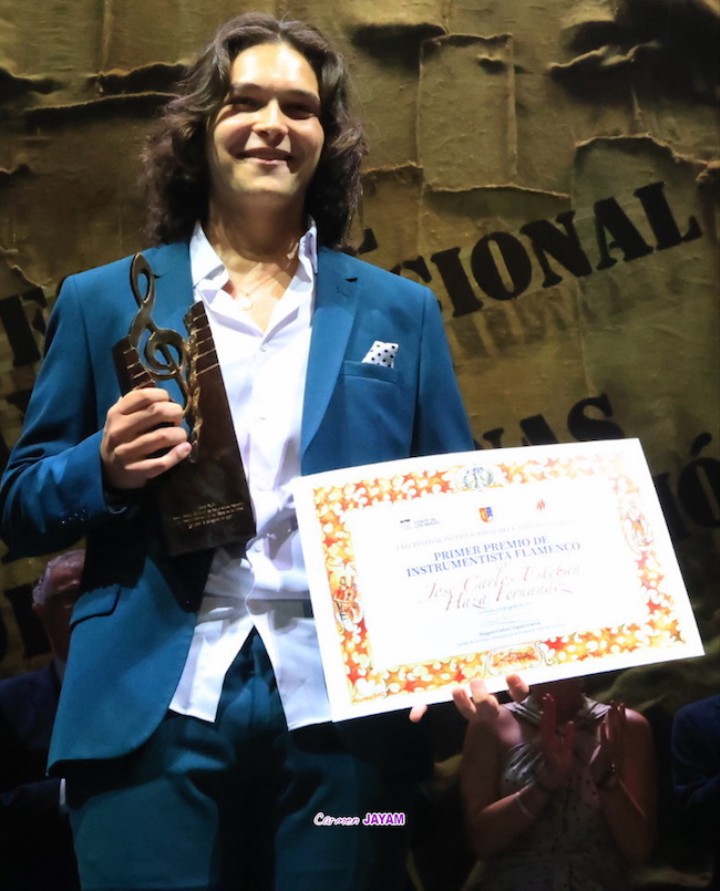 En cuanto al primer premio al instrumentista flamenco, dotado con el trofeo ‘Filón’ y 6.000 euros, ha sido para el joven José Carlos Esteban-Hanza Fernández, de Almería. Con tan solo 20 años, este pianista ha demostrado que lleva el flamenco en la sangre. Sobrino de ‘Tomatito’, ha acudido a la final con parte de su familia: Cristóbal Santiago y Antonio Torres ‘Pescaito’ al cante y Moisés Santiago a la percusión. El galardón le motiva a seguir estudiando y continuar defendiendo su talento sobre el escenario. En segunda posición (2.000 euros) ha quedado la flauta de la extremeña Ostalinda Suárez con su taranta cartagenera y flautasía flamenca.
