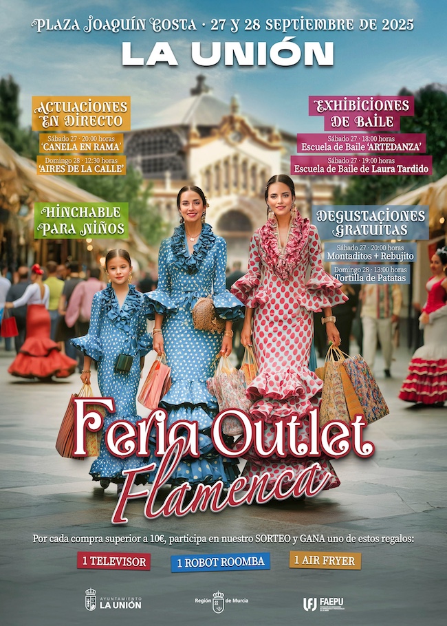 Esta mañana, en el salón de actos del Ayuntamiento de La Unión, se ha presentado oficialmente la Feria Outlet Flamenca, que se celebrará los próximos días 27 y 28 de septiembre en la Plaza Joaquín Costa.