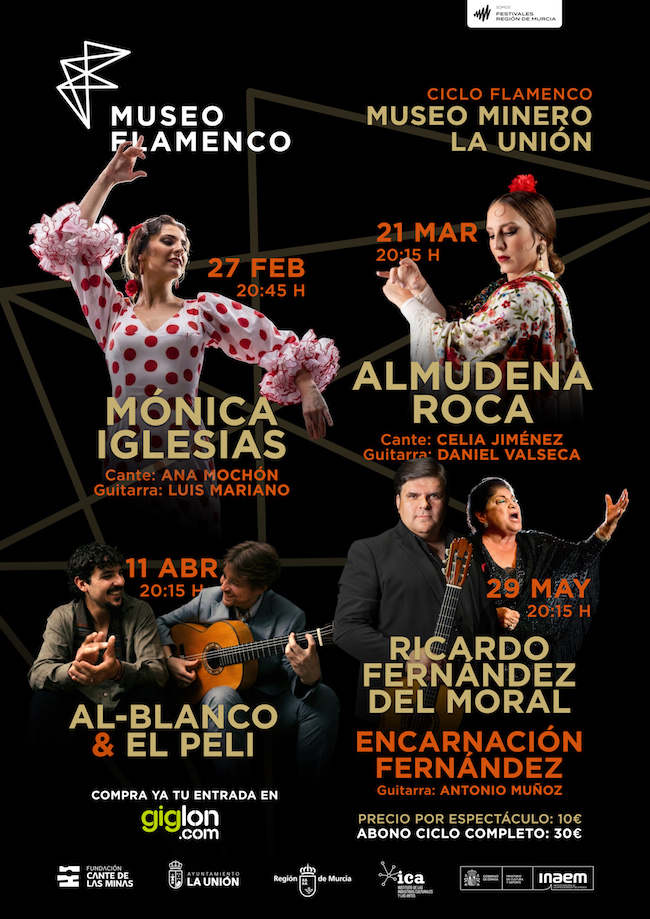 El 27 de febrero, el ciclo se inaugura con el espectáculo de Mónica Iglesias, bailaora ganadora del Premio Desplante del Festival Internacional del Cante de las Minas. Estará acompañada por la cantaora Ana Mochón, artista galardonada en varias ocasiones en el propio festival, y por el guitarrista Luis Mariano, considerado uno de los guitarristas más reconocidos y solicitados en el ámbito del baile flamenco.
