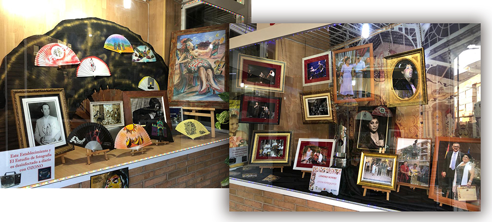 Los escaparates de la tienda de fotografía de la calle Mayor están adornados con imágenes y elementos que ambientan las fechas flamencas que se avecinan, siendo enriquecidos por los premios de la ‘Lámpara minera’ y ‘Pencho Cross’ que se entregarán en esta edición.