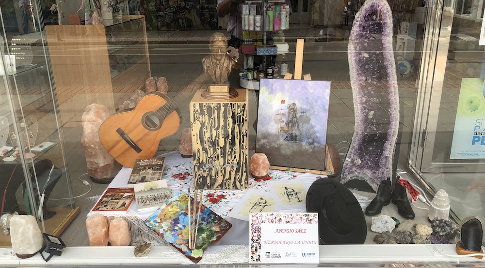 El establecimiento ubicado en la calle Mayor luce en su escaparate otro de los galardones que entrega el Festival Internacional del Cante de las Minas de La Unión, en concreto, el trofeo ‘Asensio Sáez’.