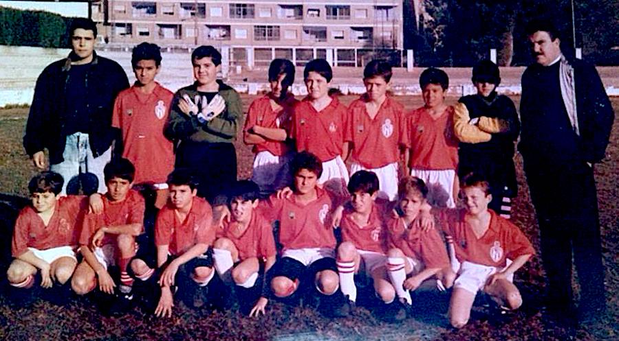 La Unión Athletic alevín de la temporada 1989/90. De pie, de izquierda a derecha: Asensi, Ñoño, Juan Pablo, Ginés García Salmerón, Fran, José Carlos, Jaro, Víctor Saorín, Fernando y Andrés Planillas. Agachados: Bibi, Alfonso ('Súper'), Víctor Guerrero, Ángel Cotorruelo, Antonio González, Dani, Matías y Levas.