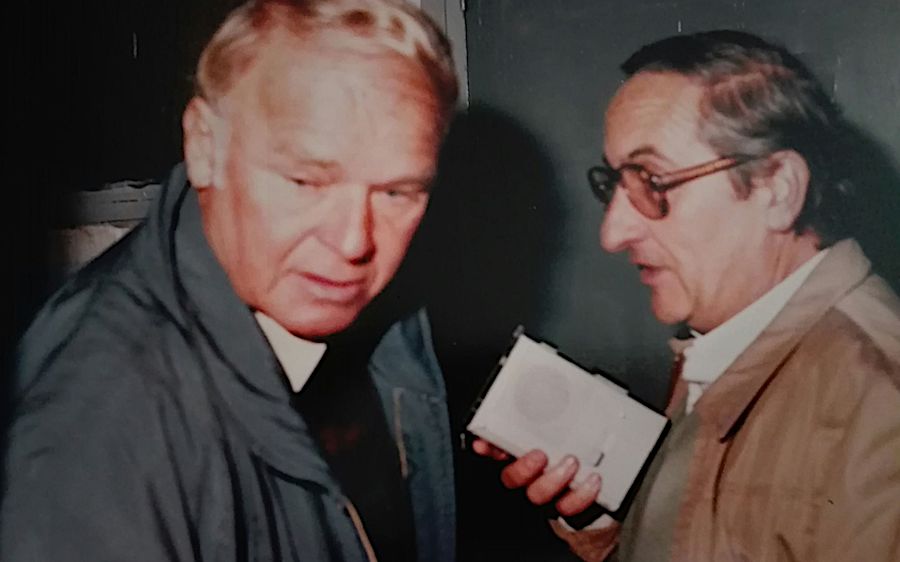La foto corresponde a una entrevista efectuada por Pascual García Mateos a Kubala, como entrenador del Real Murcia en la temporada 1986-87, cuando el equipo grana estaba en primera división y tenía futbolistas de la talla de Timoumi, quien había sido elegido ‘Balón de oro’ de África. Era la segunda visita del conjunto murciano a La Unión, pues el año anterior, con Vicente Carlos Campillo como técnico y ‘Macho’ Figueroa (fallecido recientemente) como estrella del equipo, también había estado en estas tierras.