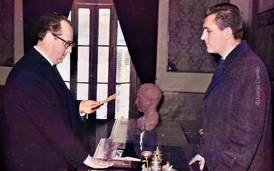 Imágenes del momento de la jura de Esteban Bernal como alcalde de La Unión, cargo que desempeñó entre 1961 y 1972, destacando en esa etapa la puesta en marcha, en su primer año de gobierno, del Festival del Cante de las Minas.
