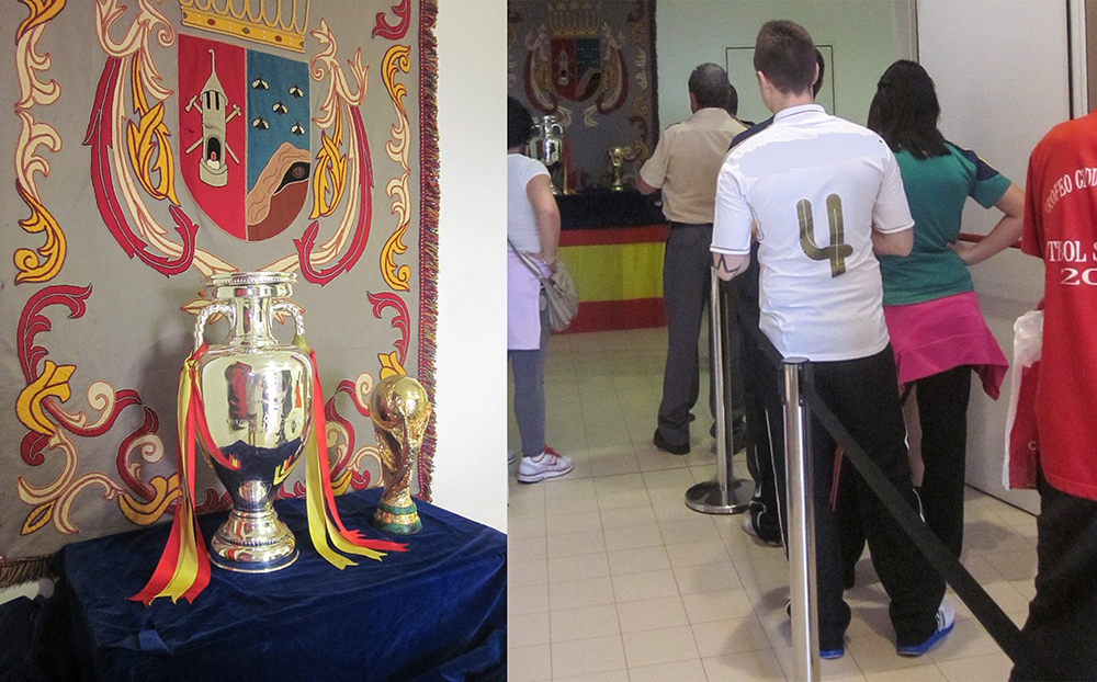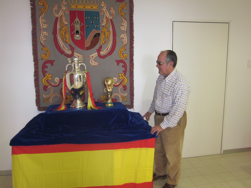 Ginés Gomariz recuerda la exposición de los trofeos conseguidos por la selección española de fútbol como campeón del Mundial de 2010 y de la Eurocopa de 2008, que tuvo como marco la Casa del Piñón en abril de 2012. Fueron tres mil los vecinos que acudieron a fotografiarse con los trofeos.