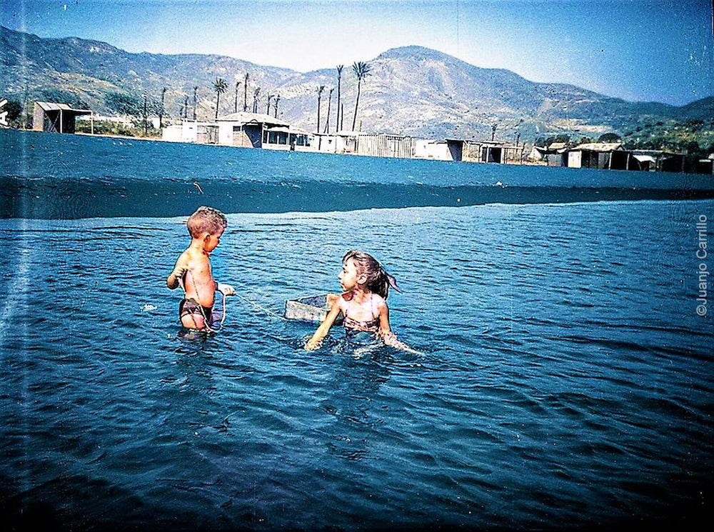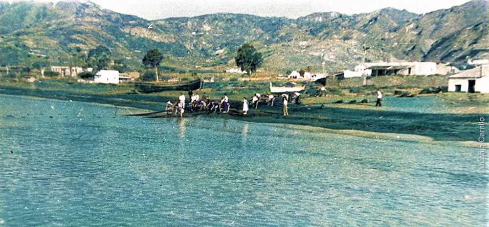 Juanjo Carrillo sigue recuperando y restaurando fotografías de Portmán de otra época, en la que se puede ver su fisonomía de entonces, a personas bañándose y a los pescadores, como es la foto superior con el sistema tradicional de calado y recogida de peces con red desde la orilla en un perfecto trabajo en equipo.