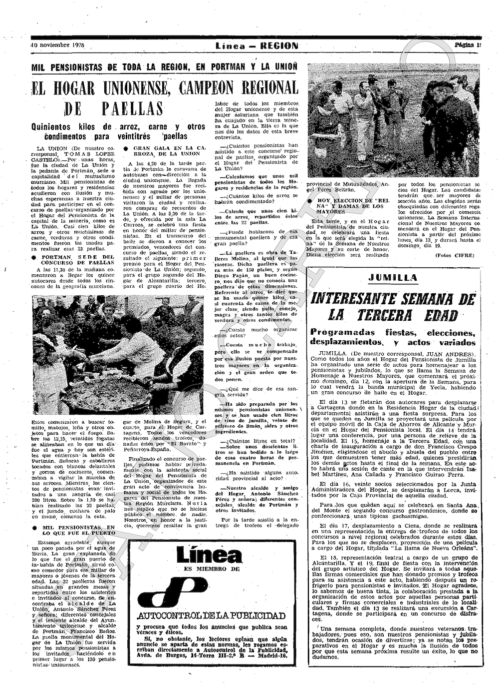 El periódico de febrero de 1973 reflejaba: "...el viejo e histórico Hospital de Sangre desaparecerá de su sitio en esa plaza de tanta solera unionense”. El problema fue, según el artículo, que La Unión debía tener un centro de asistencia sanitaria, pero no podían conservarlo y se lo cedieron al Ministerio de Trabajo para hacer el Hogar del Pensionista, dondem a la vez y al lado, ya se construía el nuevo hotel.