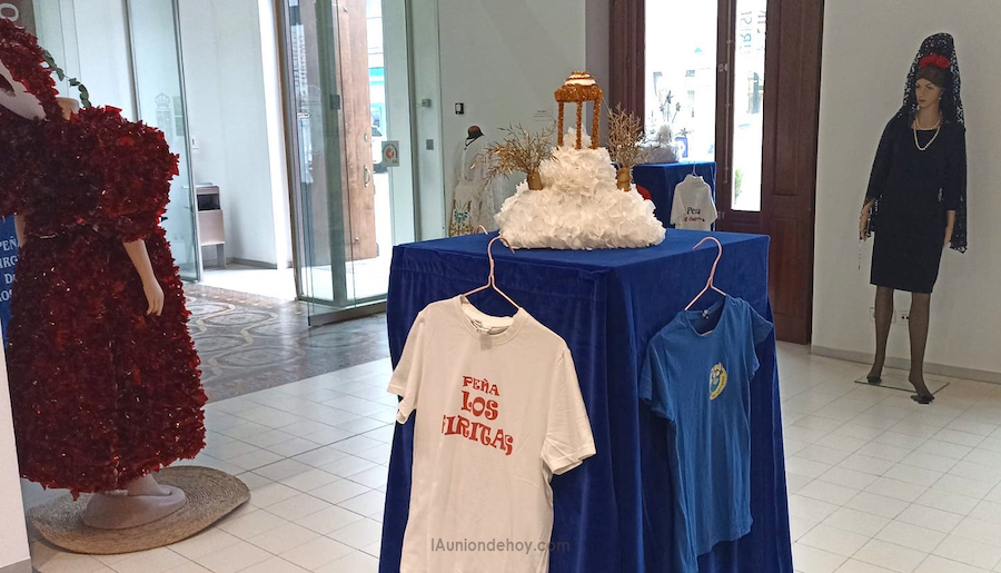 La muestra también ofreció vestuarios de 'manolas', típicas acompañantes en las procesión, y camisetas de peñas actuales, además de bandas y una corona de cortes reales festeras.