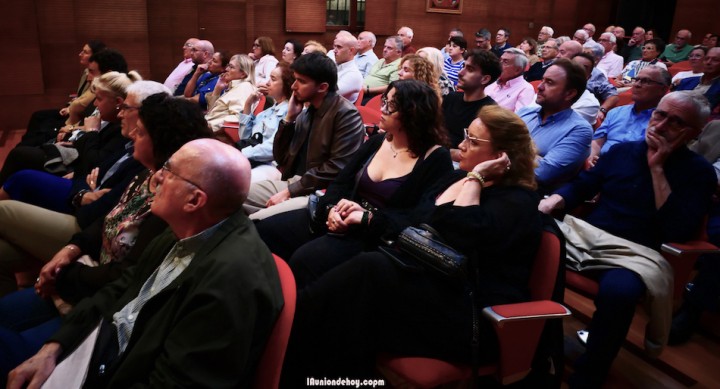 Más eventos y fechas. En este segmento del segundo tomo es cuando surge el primer concurso flamenco dentro de las fiestas de La Unión, es la primera vez que hay un desfile con carrozas y es cuando nace Pencho Ros. Fue un 25 de agosto de 1926 cuando el ayuntamiento aprobó el escudo de La Unión, aunque, por diversos avatares, no se materializó hasta 1975, "pero era el mismo", remarcó el conferenciante, quien aprovechó para demandar una bandera oficial. También reclamó una calle o plaza para María Cegarra, que en 1927 estrenó su primer laboratorio. Anticipo el cronista que ya están manos a la obra con el gobierno local para ese recuerdo permanente a quien fue la primera perito químico de España. Por cierto, puestos a adelantar actuaciones, la primitiva reja del cementerio municipal también tendrá su protagonismo.