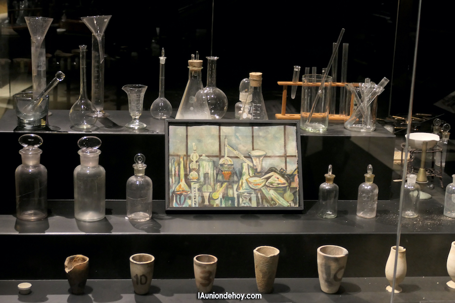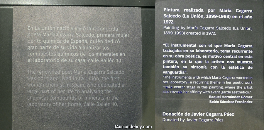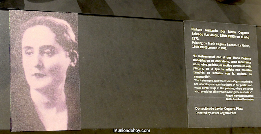 La unionense María Cegarra Salcedo fue prestigioso científica y reconocida poeta, pero también probó en el mundo del arte pictórico cuando pintó un lienzo en el que pintó su material de trabajo en el laboratorio. Esta pintura se conserva en el Museo Minero tras donación de la familia.