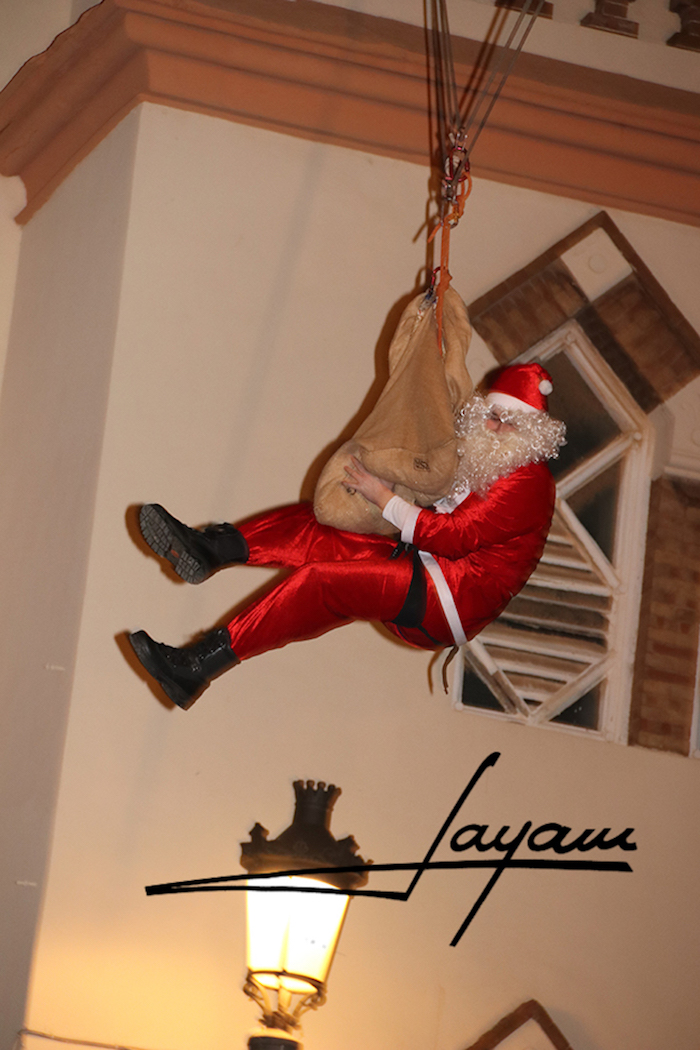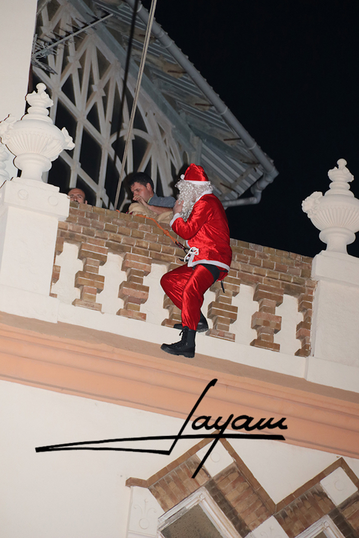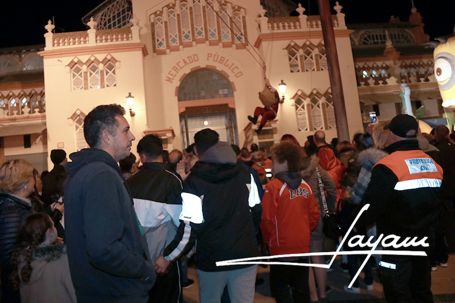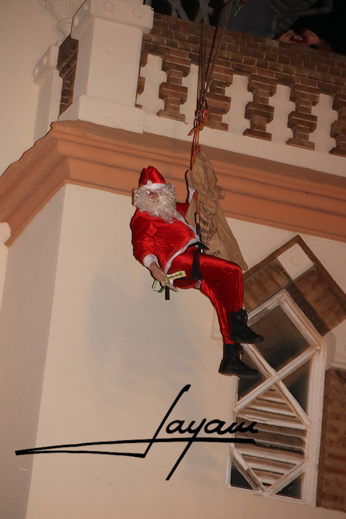 Papá Noel aterrizó en la tarde de ayer ante la fachada del Mercado Público de La Unión tras deslizarse en tirolina ante la multitud de niños que esperaban.