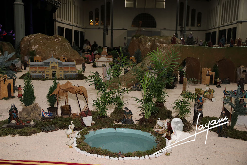 Una zambombada de los alumnos d la escuela de Antonio Muñoz Fernández precedió la inauguración del gran ‘nacimiento’ municipal montado dentro del Antiguo Mercado Público.