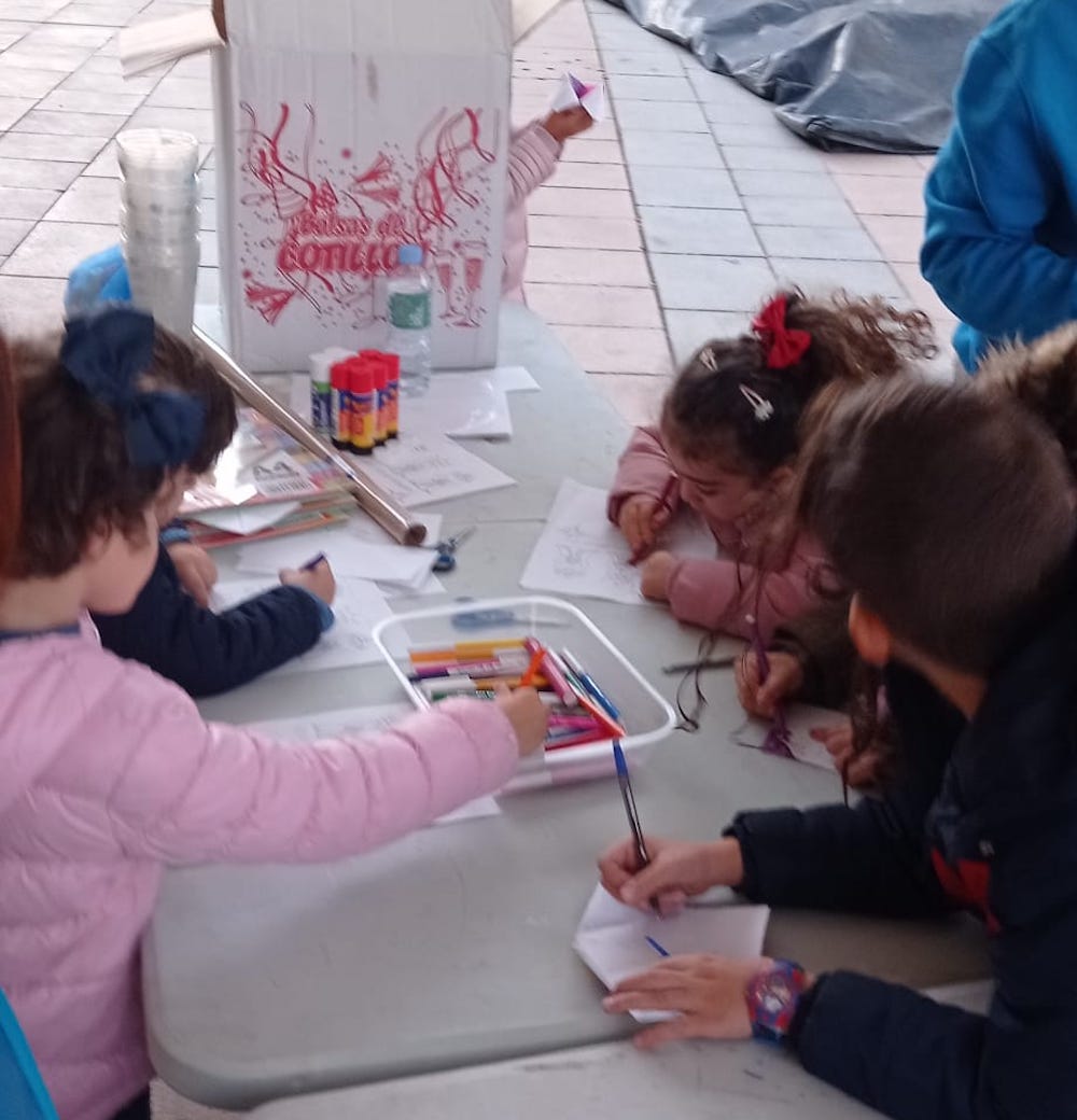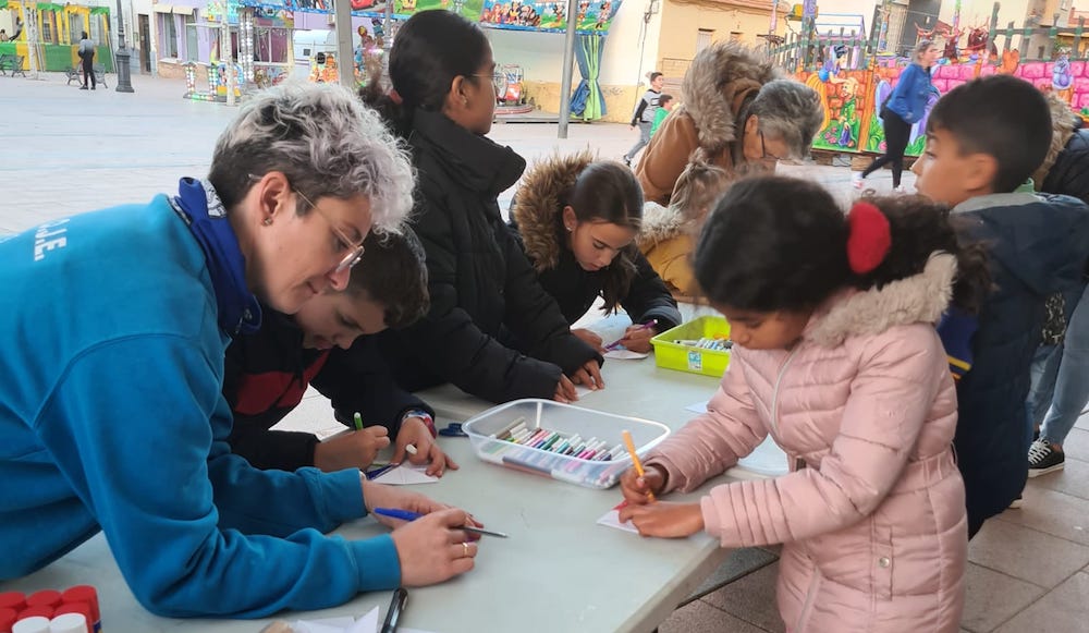 La agrupación Mar Menor de la Organización Juvenil Española estuvo en la tarde de ayer durante dos horas organizando diferentes juegos y manualidades entre la plaza de Joaquín Costa y el Mercado Antiguo.