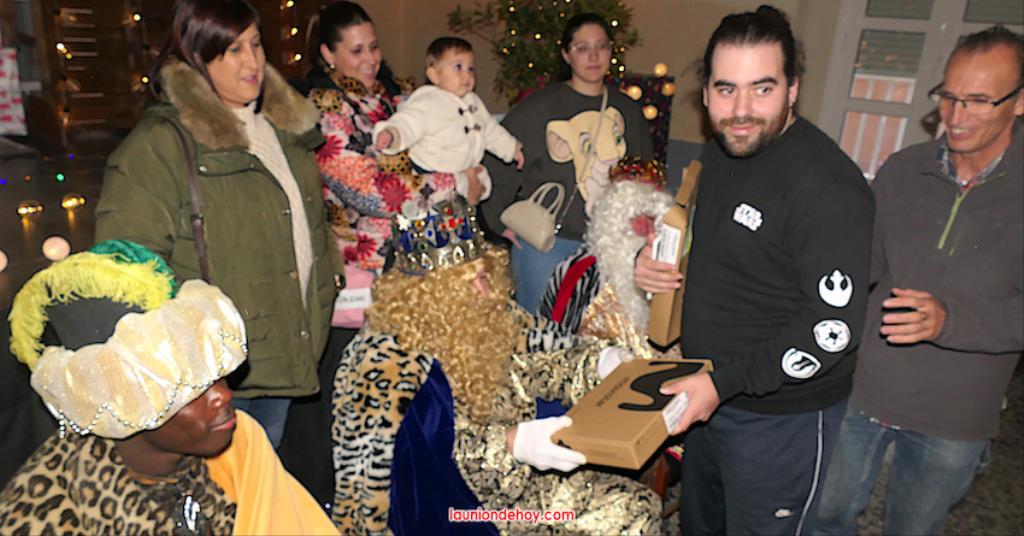Daniel Portero, presidente de la Liga de Vecinos, fue el que iba nombrando a los pequeños que recibían los juguetes de sus majestades. La curiosidad es que en plena entrega de regalos llegó uno inesperado. Era el router para internet del edificio, que se estaba esperando unos días y que vino a llegar junto a los regalos de Reyes Magos.