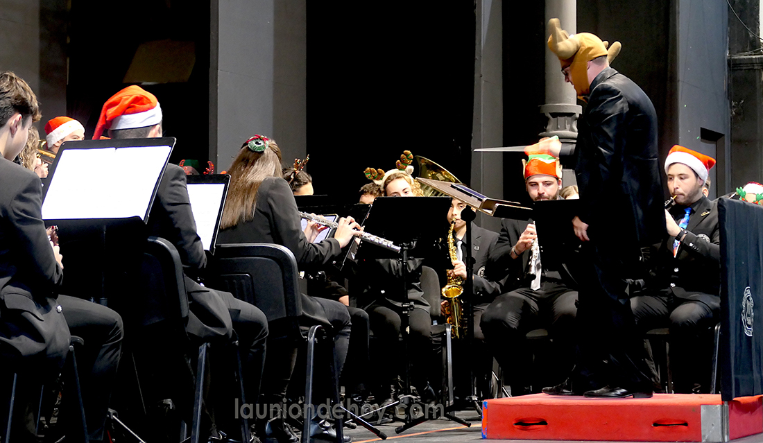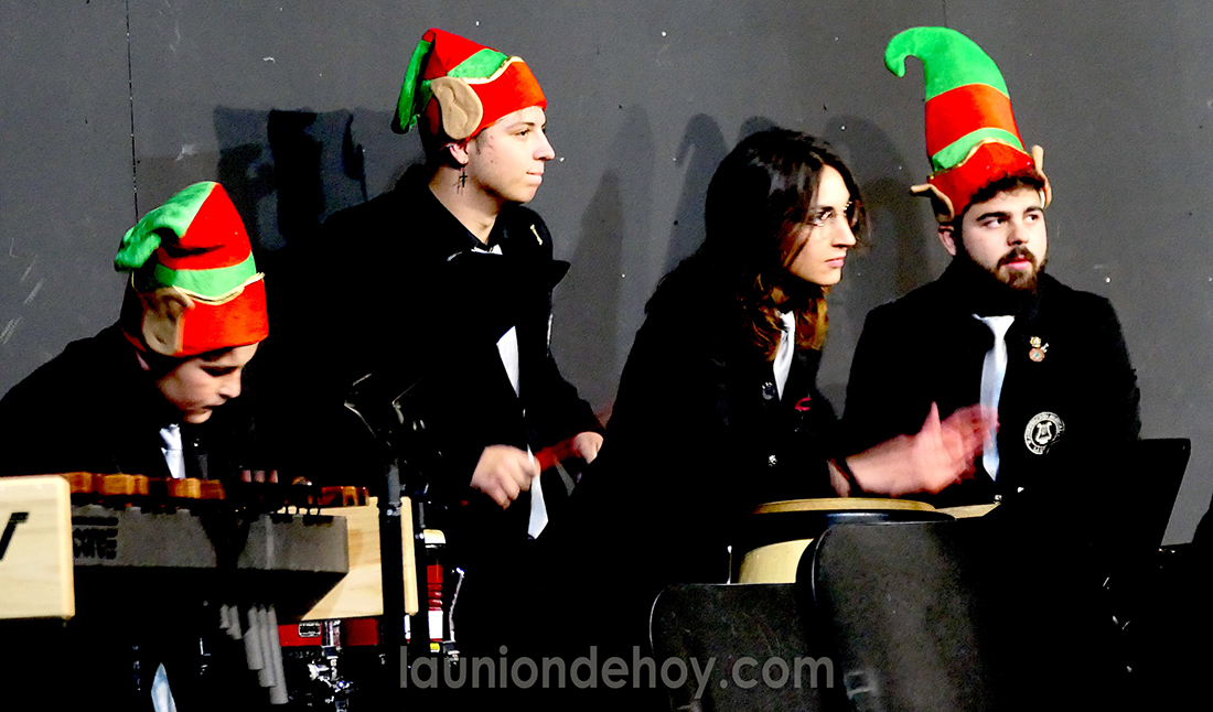 Agrupación Musical La Unión resolvió con brillantez su tradicional concierto, en el que fueron protagonistas las bandas de la escuela y la titular, tanto haciendo sonar los instrumentos como cantando villancicos populares.