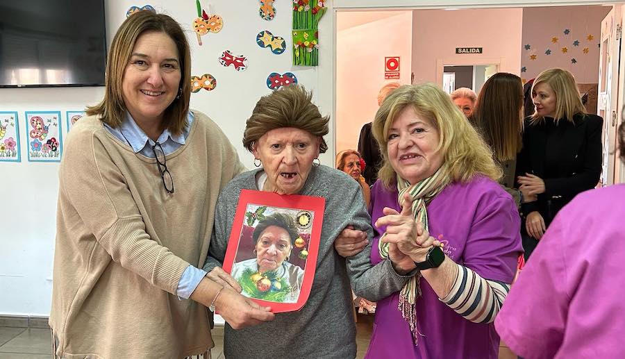 El centro de estancias diurnas de La Unión celebró una fiesta navideña con voluntarias del 'Hogar de la tercera edad' interpretando villancicos, que contó con la presencia de las ediles Dami García y Loli Mendoza.