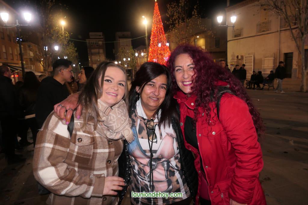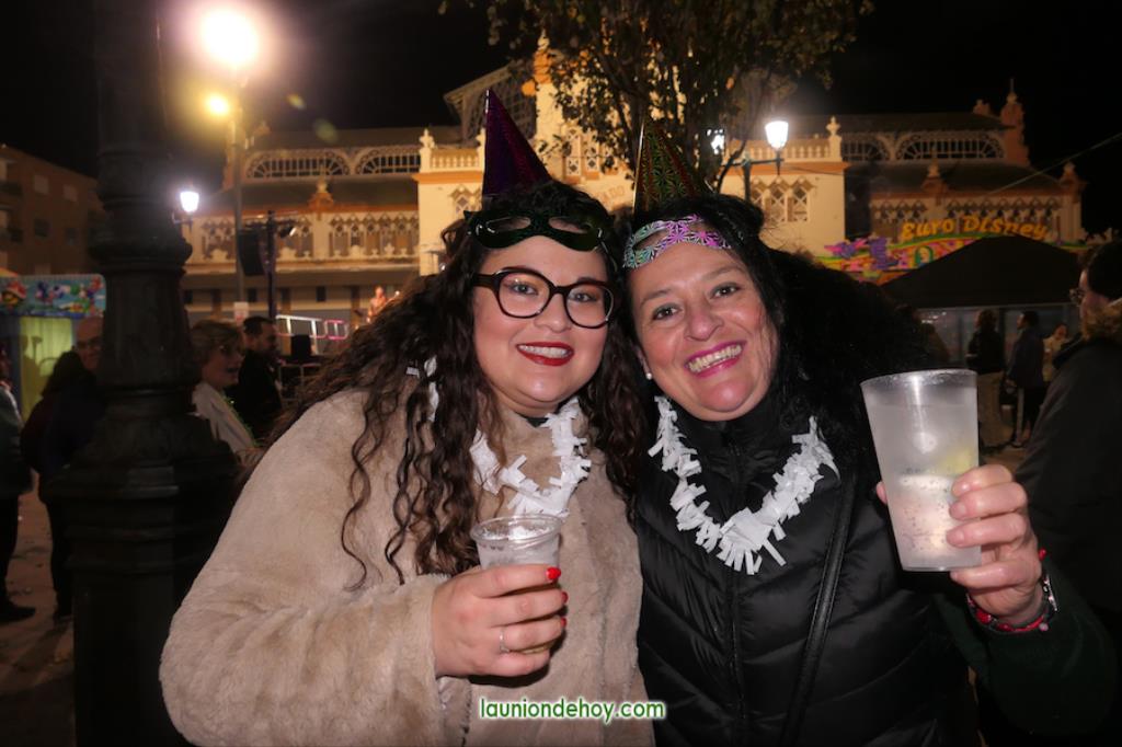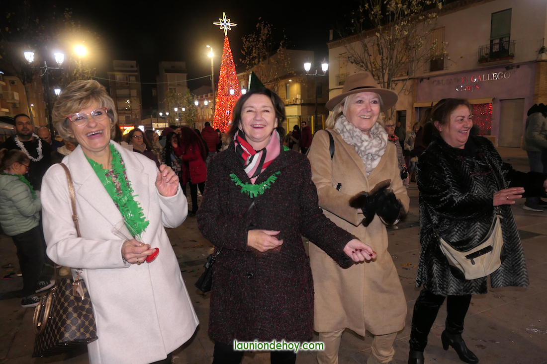 También hubo alicientes preparados desde el gobierno municipal, como el reparto de bolsas de cotillón, de vasos de vino viejo y de uvas para los adultos y golosinas (‘pelotazos’) para los pequeños, a lo que se sumó una suelta de globos que debían ser pinchados por los presentes, llevando algunos regalos, como eran cava benjamín para los mayores y juguetes para ‘los peques’.