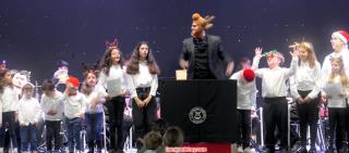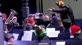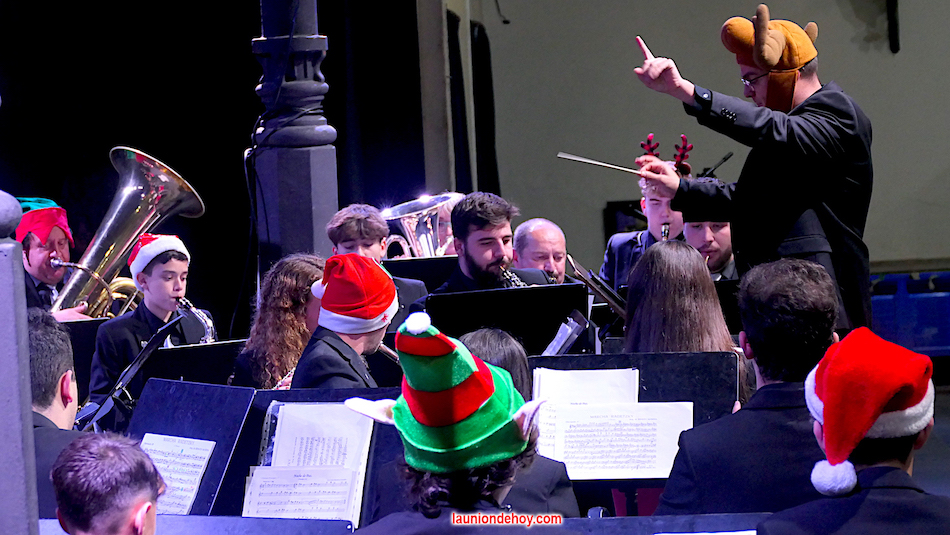 La banda titular de la Agrupación Musical La Unión ofrece un muy animado concierto navideño con temas alegres aderezados por los villancicos cantados por los alumnos de música y movimiento y la participación de la banda escuela.