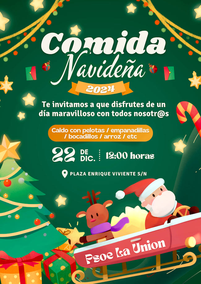 La formación socialista de La Unión celebrará el encuentro navideño de este año el domingo que coincide con el sorteo extraordinario de la Lotería Nacional. Será a partir de las 12 horas en la plaza Enrique Viviente. Habrá caldo con pelotas, bocadillos, arroz, empanadillas, etc. En la foto, integrantes del partido en el encendido del árbol navideño de Roche.