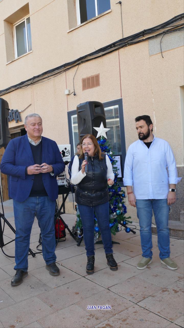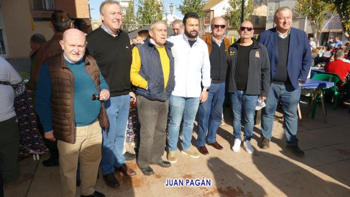 La familia del Partido Popular de La Unión celebró el tradicional almuerzo navideño frente a su sede de la plaza de Joaquín Costa con presencia de más de cuatrocientas personas y epílogo con la música y el baile como protagonista. En la foto se observa a Francisco Bernabé (senador unionense), Visitación Martínez (presidenta de la Asamblea Regional), Joaquín Zapata (alcalde del municipio) y Julio García (director del Cante de las Minas).